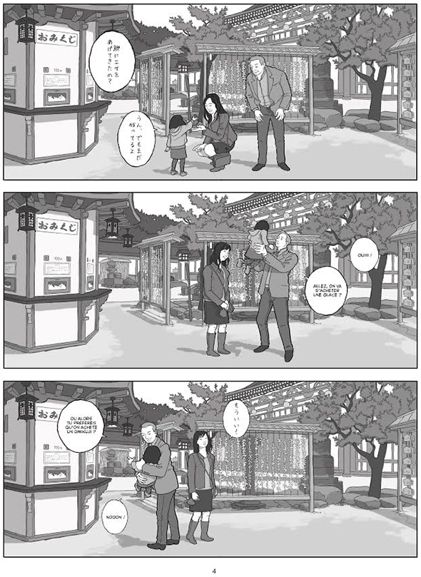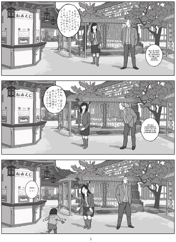 Raconter une histoire, c'est bien souvent temoigner de notre experience, mettre en scene notre relation au monde. La vie est une source inepuisable de sujets. La notre comme celle de nos contemporains. Nul besoin d'aller puiser dans un imaginaire factice le ressort dramatique d'une histoire, quand il suffit de s'asseoir, d'ecouter et de regarder. Toutes ces annees passees au Japon n'ont pas atteint ma capacite d'emerveillement, ou d'etonnement, mon excitation devant l'inconnu. Ainsi je reste la, a observer, immobile, camoufle, invisible au milieu du tumulte, immisce dans la vie des autres sans jamais la perturber, tout en y accordant la plus extreme attention. Chacun de nous n'est jamais que la somme de ce que nous apportent ceux qui nous entourent, ceux dont on croise la vie, ou seulement le regard, ceux meme qui nous croisent sans nous regarder. En les racontant, finalement, on se raconte aussi.