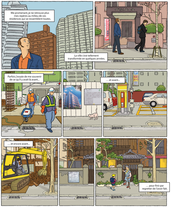 Variation autour du theme " un lieu, une histoire", cette serie a ete publiee dans l'hebdomadaire Asahi Weekly de janvier 2008 a mars 2009, en anglais, a raison d'une page par mois.