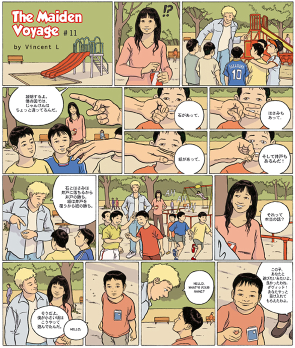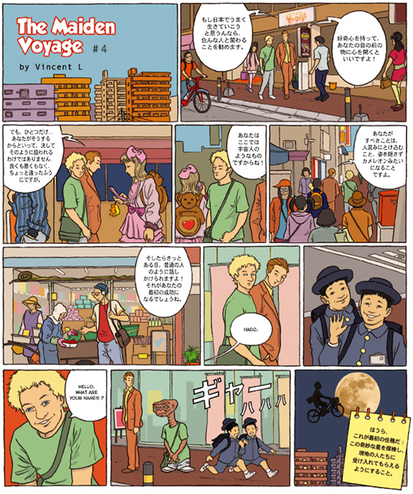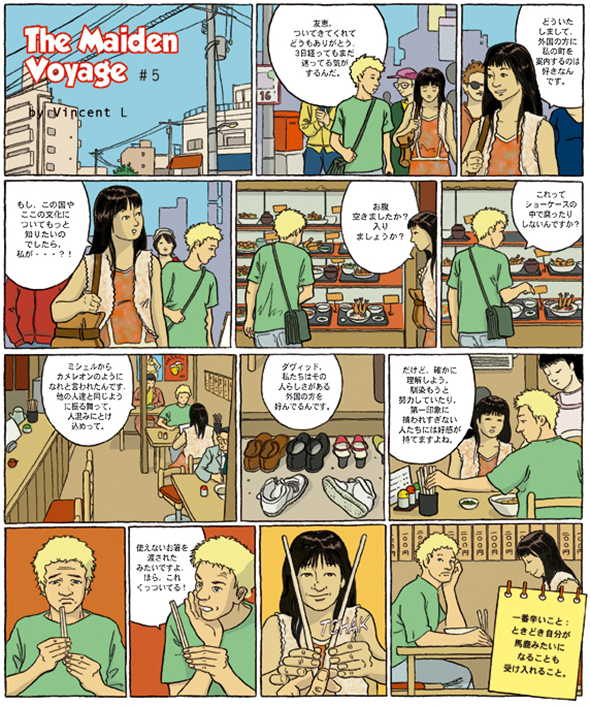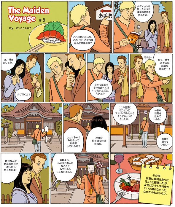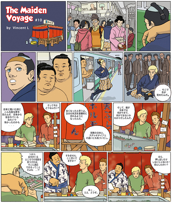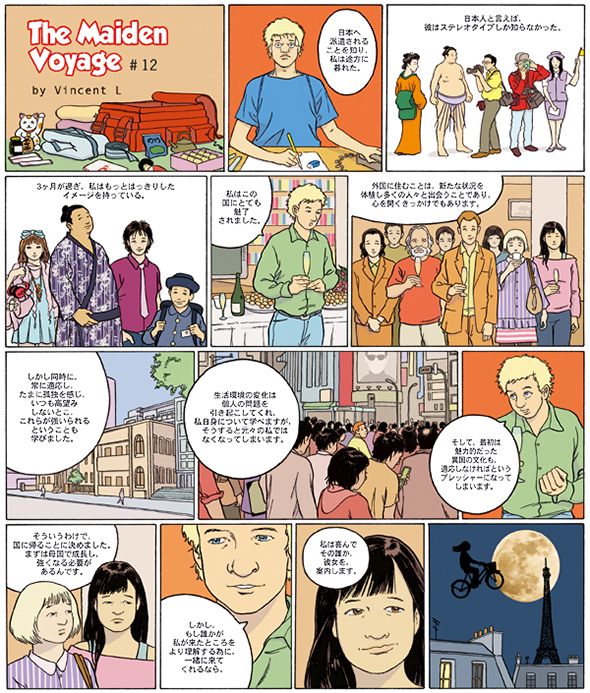 WanderingMindに続いて、2009年4月から2010年3月まで月に1ページずつ週間朝日ウィークリーに英語で掲載されていたシリーズです(全12話)。
