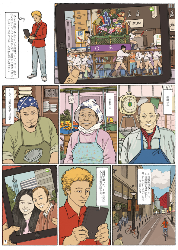 Histoire parue dans ≪Kyujukyo Press≫, un magazine destiné aux entrepreneurs de la préfecture de Fukuoka. (lecture de droite à gauche)