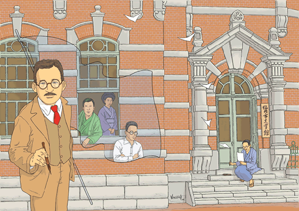 福岡市文学館からの企画によりプロモーションとして、その時代の背景を描いて、ポスター、チラシ、看板、しおりなどを手掛ける。(福岡市総合図書館)