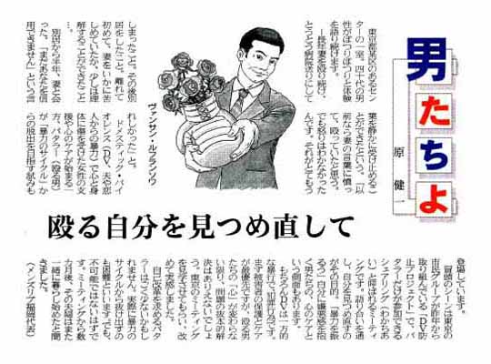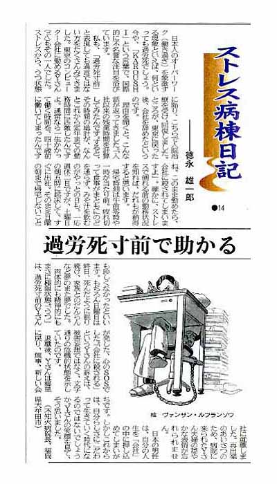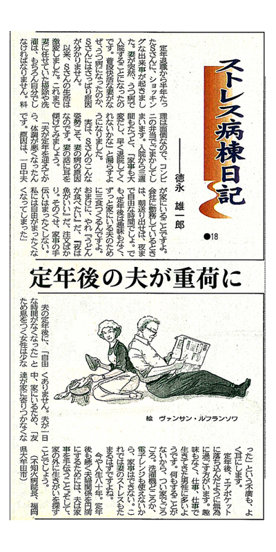 2000年、西日本新聞の記事の中のストレス社会の現象及び男性の心情を取り上げた2つの連載コラムをイラストで表現。