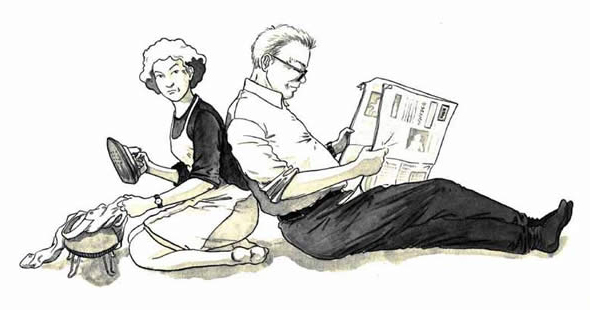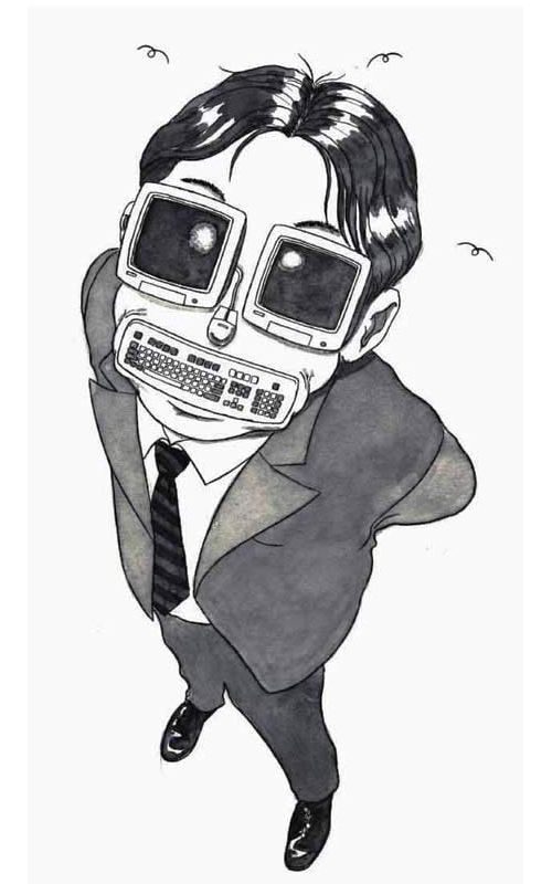 Dessins illustrant deux séries d'articles à vocation sociologique parus en 2000 dans le quotidien à grand tirage Nishi Nihon Shimbun.