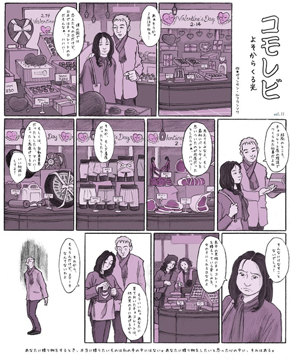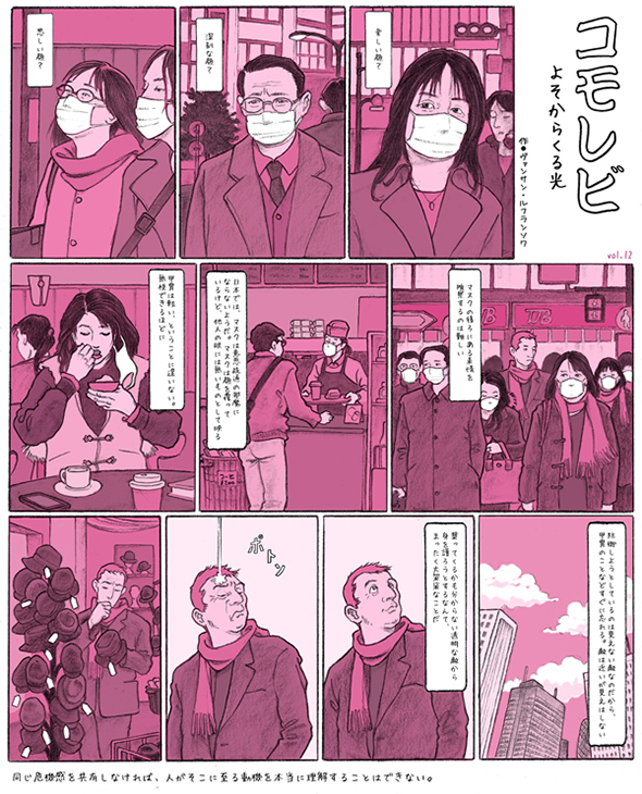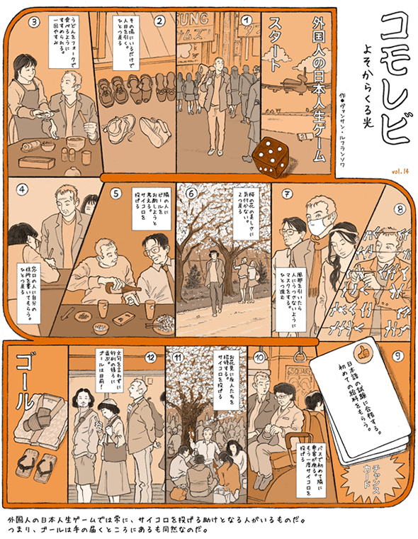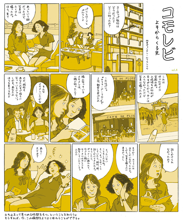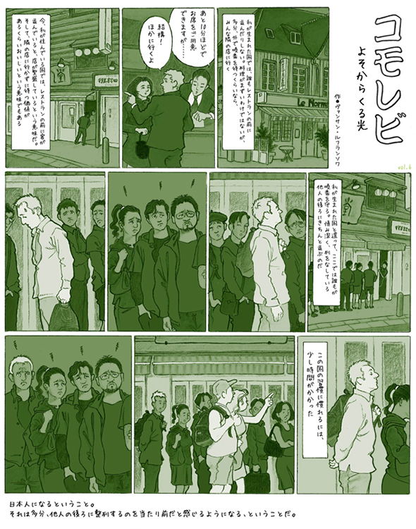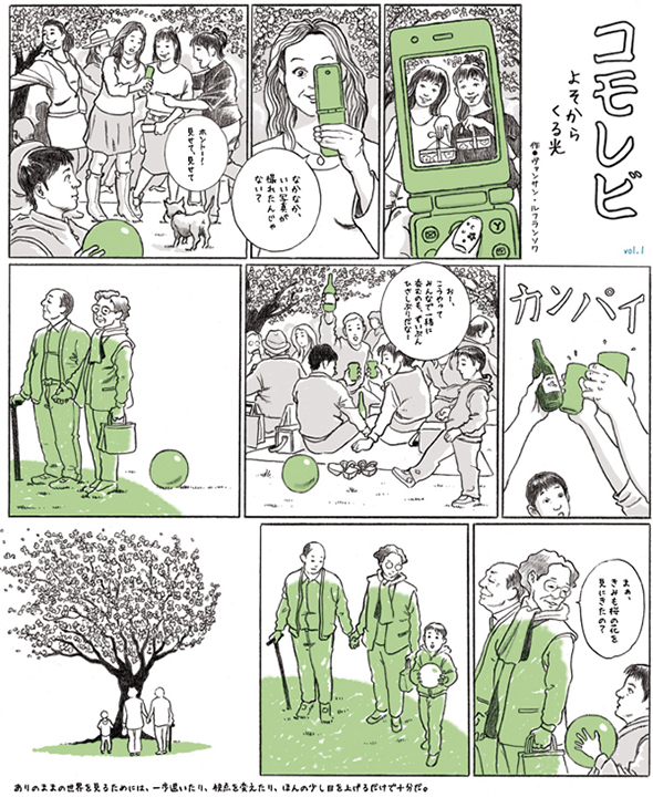 Série publiée en japonais à raison d'une page par mois dans le magazine Sotokoto à partir d'avril 2012, abordant des thèmes de société avec le regard un peu décalé de l'étranger qui s'interroge. (Attention: lecture de droite à gauche)