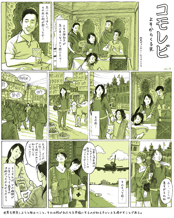 2012年4月から月刊誌ソトコトに掲載されるシリーズ。普段の生活のなかの出来事をちょっと視点をかえユーモラスやエスプリを交えています。